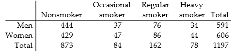 If one of the 1197 people is randomly selected, find the probability of getting a regular or heavy smoker.