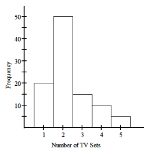The histogram above represents the number of television sets per household for a sample of U.S. households. What is the maximum number of households having the same number of television sets?