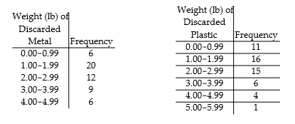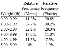 Construct one table that includes relative frequencies based on the two frequency distributions below. Do those weights appear to be about the same or are they substantially different.? Round to the nearest tenth of a percent if necessary.