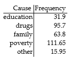 At the National Criminologists Association's annual convention, participants filled out a questionnaire asking what they thought was the most important cause for criminal behavior. The tally is shown above.