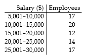 A company had 80 employees whose salaries are summarized in the frequency distribution below. Find the mean salary.