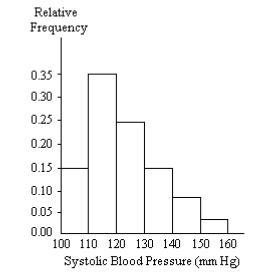 A nurse measured the blood pressure of each person who visited her clinic. Following is a relative-frequency histogram for the systolic blood pressure readings for those people aged between 25 and 40. The blood pressure readings were given to the nearest whole number. What class width was used to construct the relative frequency distribution?