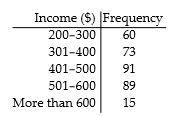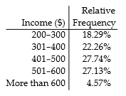 The frequency distribution for the weekly incomes of students with part-time jobs is given above. Construct the corresponding relative frequency distribution. Round relative frequencies to the nearest hundredth of a percent if necessary.