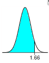 Find the probability that a given score is less than 1.66 and draw a sketch of the region.