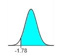 Find the probability that a randomly selected thermometer reads greater than –1.78 and draw a sketch of the region.