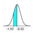 Find the probability that a randomly selected thermometer reads between –1.03 and –0.02 and draw a sketch of the region.