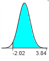 Find the probability that a given score is between –2.02 and 3.84 and draw a sketch of the region.