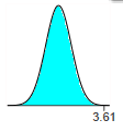 Find the probability that a given score is less than 3.61 and draw a sketch of the region.
