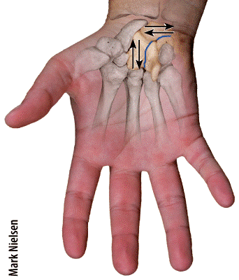 The hormone relaxin stimulates changes that lead to increased range of motion in the