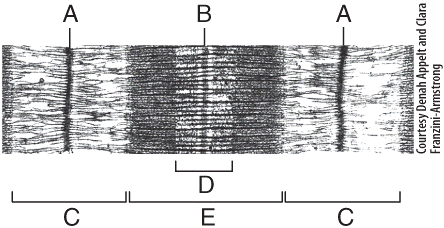 e) myofibrils, myofilaments, mitochondria