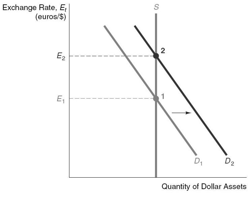 Explain and show graphically the effect of an increase in the expected future exchange rate on the equilibrium exchange rate, everything else held constant.