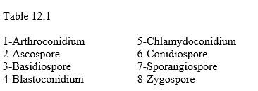 10) In Table 12.1, which of these spores are asexual spores?
