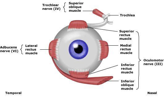 A) Extrinsic muscles of the eye: Superior, Inferior, Medial Rectus, Inferior Oblique