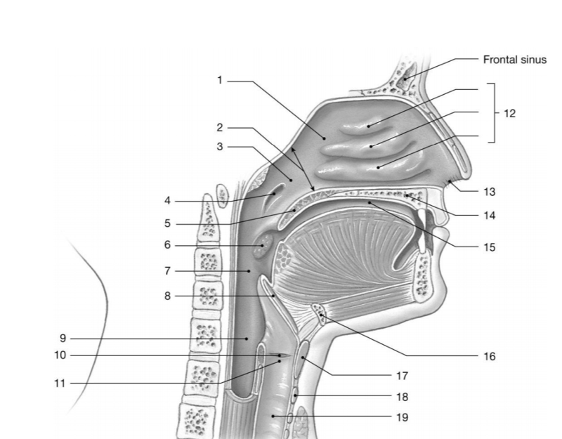 Palate (hard and soft), esophagus, trachea, larynx, epiglottis, parietal pleura, conchae ,