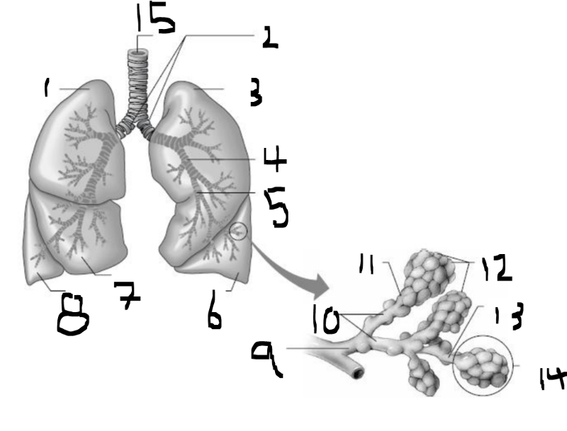 The actual sites of gas exchange within the lungs are which respiratory structure?