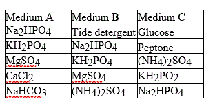 For the three types of media in Table 6.1, which medium (or media) is/are chemically defined?
