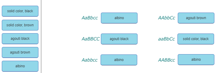 Match the phenotypes on the labels at left to the genotypes listed below. Labels can be used once, more than once, or not at all.