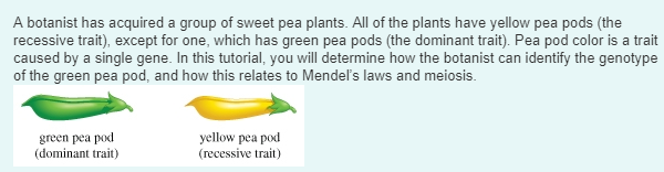 Suppose that the botanist carried out the test cross described in Parts A and B and determined that the original green-pod plant was heterozygous (Gg). Which of Mendel’s findings does her test cross illustrate?