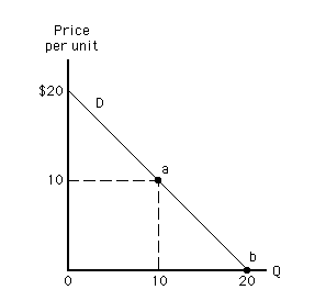 Between points a and b on the demand curve in Exhibit 5-9, demand is