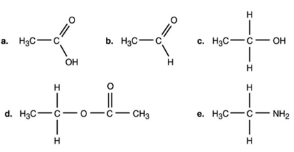 front 30 30) In Figure 2.1, which is an alcohol? A) a B) b C) c D) d E) e | back 30 Answer: C |