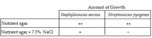 front 44 The data in Table 6.2 indicate that S. aureus is a(n) A) mesophile. B) facultative anaerobe. C) facultative halophile. D) aerobe. E) halophile. | back 44 Answer: C |